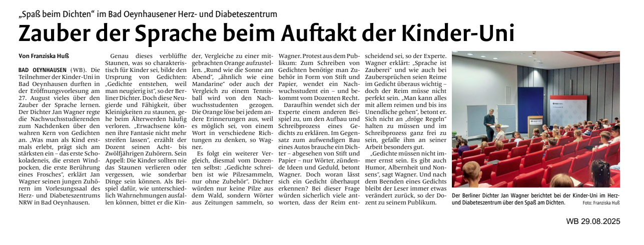 Hier finden Sie Pressemeldungen zur Kinder-Uni Bad Oeynhausen auf einen Blick.